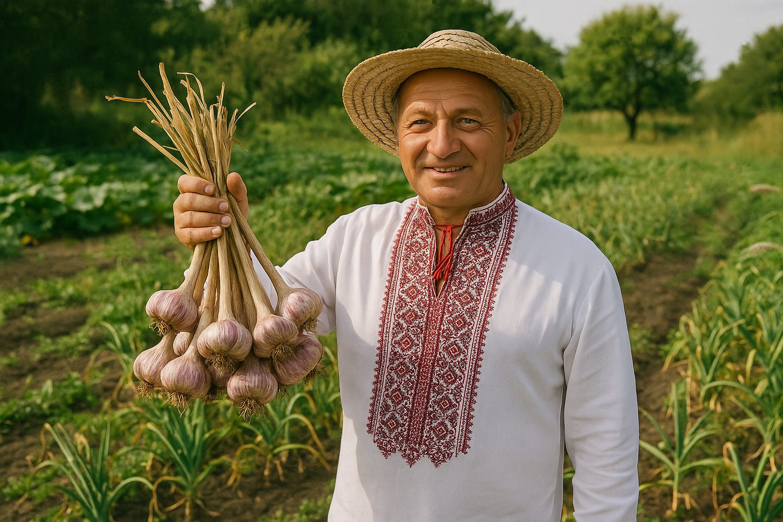Фермер Олександр Литвин із села Стецьківка цього літа вразив навіть досвідчених аграріїв: із 3 гектарів землі він зібрав понад 20 тонн часнику, що вважається рекордом для регіону. І що цікаво — для посадки він обрав не імпорт, а український сорт "Харківський фіолетовий".